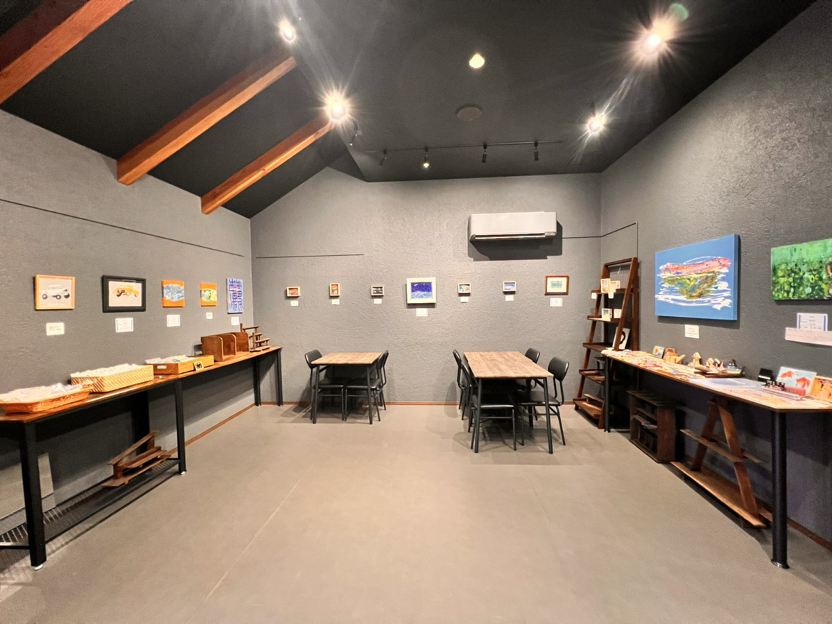 作品は、生活介護東生駒内「アンテナショップ」(活動展示場兼イートインスペース)にて